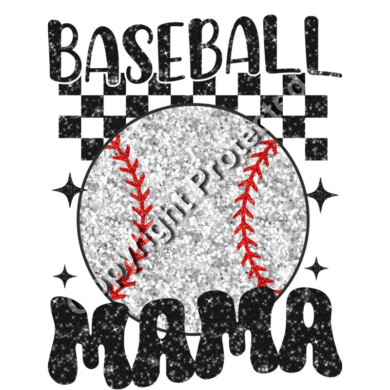 Show your pride and love for the game with our "Baseball Mama" design. Featuring a glittering baseball graphic with bold red stitching, complemented by a checkered background and sparkling text, this design is perfect for all the proud baseball moms out there. The combination of shimmer and bold elements creates a fun and eye-catching look. Ideal for various apparel and accessories, this design adds a touch of sparkle and team spirit to your collection. Key Features: Sparkling and Bold Design: The "Baseball Mama" illustration combines a glittering baseball graphic with stylish text and checkered details, making it a standout piece for any proud mom. High-Quality Print: Our design ensures excellent color vibrancy and durability, maintaining its sparkle and sharpness even after multiple washes. Explore our "Baseball Mama" design today and bring a touch of glamour and team pride to your custom apparel projects. Perfect for personal use, gifts, or adding a sparkling statement piece to your product offerings, this design is sure to resonate with baseball moms and sports enthusiasts alike.