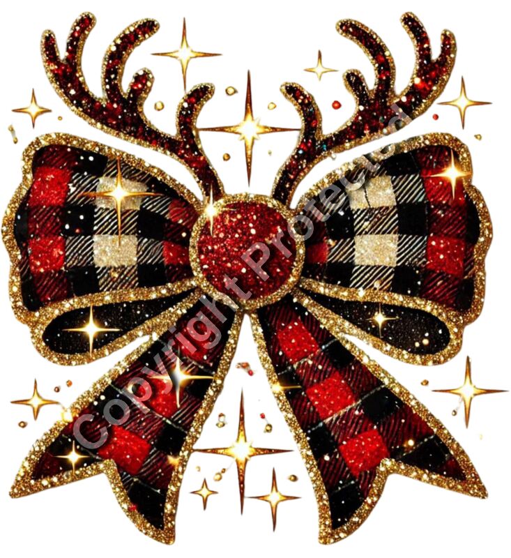 Add a rustic, festive touch to your holiday style with our “Buffalo Plaid Reindeer Bow” DTF transfer! This design features a red and black buffalo plaid bow with sparkling gold accents and reindeer antlers, creating a perfect blend of cozy charm and holiday glamour. Surrounded by dazzling stars and glitter effects, this design shines brightly and brings a warm, whimsical look to any hoodie, crewneck, or T-shirt. Embrace the spirit of the season with this eye-catching, country-inspired design that’s sure to make you stand out in holiday gatherings!