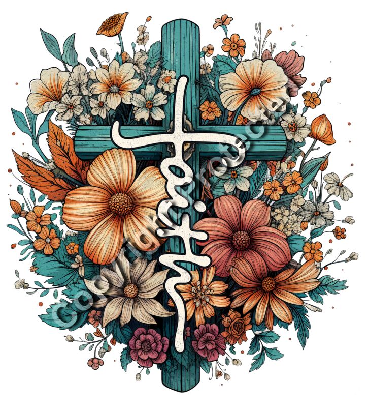 Introducing our "Faith & Flowers" design, a beautiful and uplifting graphic that blends the power of faith with the beauty of nature. This intricate design features a wooden cross adorned with vibrant flowers in shades of orange, pink, and teal, symbolizing growth, hope, and renewal. The word "faith" is elegantly written across the cross, serving as a constant reminder of the strength and beauty that comes from believing. Available Options: T-Shirts: Carry your faith with you wherever you go with our "Faith & Flowers" t-shirt. Made from soft, high-quality cotton, this shirt is perfect for everyday wear, church events, or simply sharing a positive message. The detailed design adds a touch of elegance and inspiration to your wardrobe. Crewneck Sweatshirts: Stay warm and stylish with our "Faith & Flowers" crewneck sweatshirt. Crafted from cozy fleece fabric, this sweatshirt is ideal for cooler days and evenings, offering both comfort and a beautiful way to express your faith. DIY Transfers: For those who enjoy customizing their apparel, our "Faith & Flowers" screen print transfer is the perfect option. Easily apply this design to t-shirts, tote bags, or home decor items, creating personalized pieces that inspire and uplift. Whether you're looking to express your faith in a creative way or seeking a meaningful gift for someone special, our "Faith & Flowers" design is a perfect choice. Celebrate the beauty of faith with this stunning and inspiring graphic!