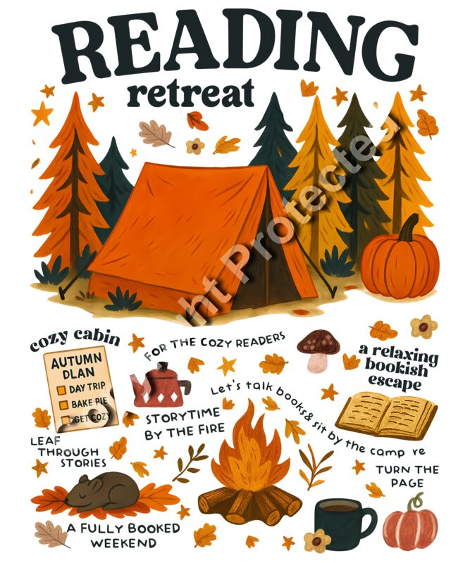 Celebrate your love for books, fall, and cozy vibes with our Reading Retreat design! 🍂📚 Whether you’re heading to a cabin getaway, joining a book club, or just relaxing with your favorite novel, this design is the perfect cozy companion. 🎨 Design Details: Warm autumn campsite with tent, campfire, pumpkins, and books Fun bookish phrases like “Storytime by the fire” & “A fully booked weekend” Vibrant DTF print that won’t crack, peel, or fade 👕 How to Order: DTF Transfer Only – Perfect for makers and small shops who want to press this design onto their own blanks. Finished Shirt or Sweatshirt – Already printed on premium quality apparel and ready to wear. 🌟 Why You’ll Love It: High-quality Direct-to-Film (DTF) transfer design Ideal for book lovers, cozy fall outfits, and reading retreats Works great on neutral, autumn-toned blanks Available as both a custom shirt and a DIY transfer 📦 Ships fast – order today and cozy up with a shirt that’s as bookish as you are!