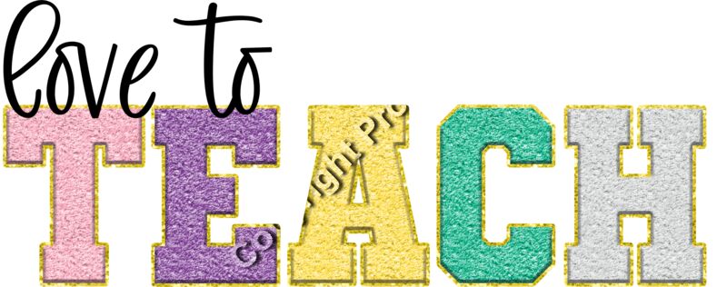 Celebrate your passion for teaching with our "Love to Teach" design! This vibrant and textured design features the word "TEACH" in bold, collegiate-style letters with a plush chenille effect. Each letter is uniquely colored and outlined with a sparkling gold glitter border, making it a standout statement for any educator. Above the word "TEACH" is a delicate cursive "love," adding a sweet touch to this empowering design. Perfect for t-shirts, sweatshirts, or tote bags, this design is a stylish way to show your love for shaping young minds every day.
