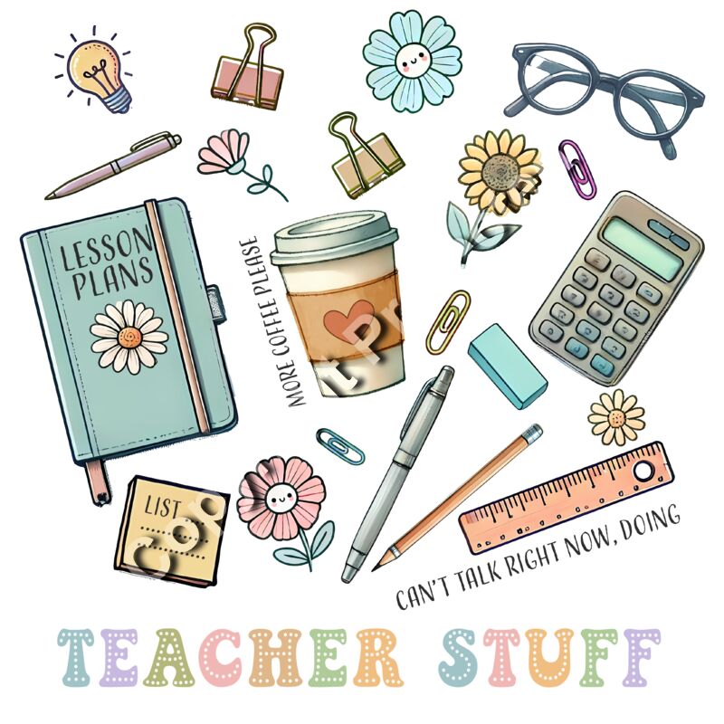 Celebrate the heart of the classroom with our "Teacher Stuff" DTF transfer! This vibrant collage features an array of classic teacher essentials, from pencils and books to apples and chalkboards, all brought together in a fun and lively design. Perfect for showing off your passion for teaching, this transfer adds a colorful and playful touch to your wardrobe. Whether you're preparing for a new school year or just want to express your love for education, this easy-to-apply design is ideal for personalizing your favorite apparel with a bit of teacher pride!