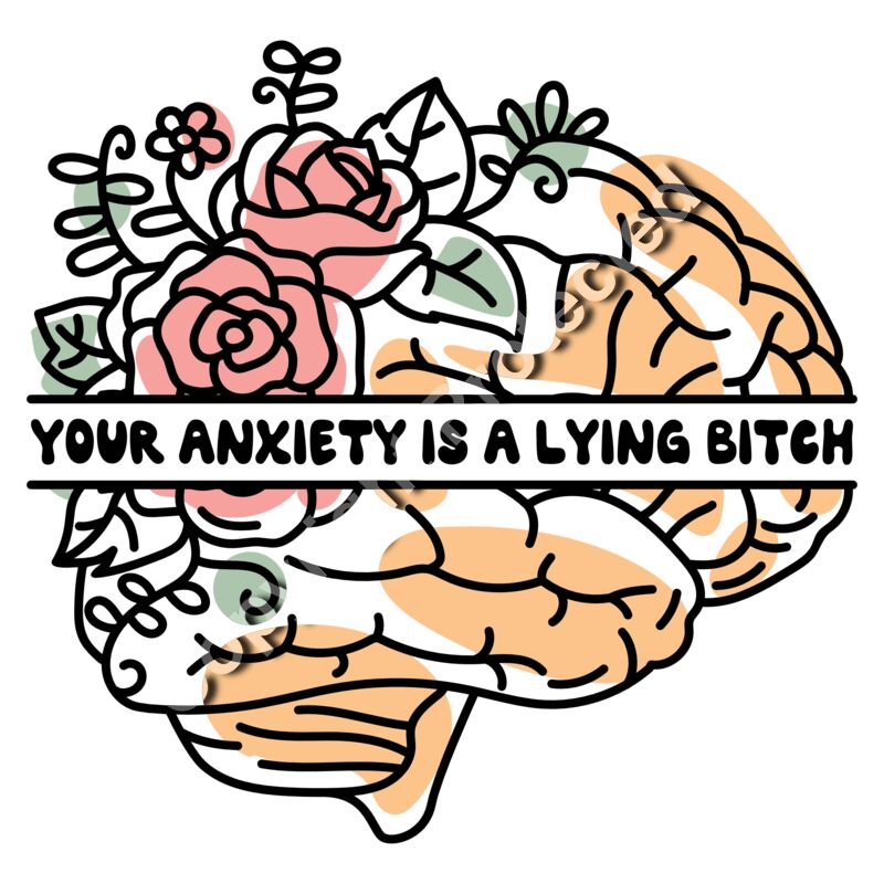 Introducing our "Your Anxiety Is A Lying Bitch" design, a bold and empowering statement for anyone who’s tired of anxiety holding them back. This graphic features a stylized brain interwoven with flowers, representing both the complexity of the mind and the beauty that can bloom despite the struggles with anxiety. The design is both visually striking and deeply relatable, serving as a reminder that you are stronger than your anxious thoughts. Available Options: T-Shirts: Wear your strength on your sleeve with our "Your Anxiety Is A Lying Bitch" t-shirt. Made from soft, breathable cotton, this shirt is perfect for everyday wear. Whether you’re battling anxiety or supporting someone who is, this shirt offers a powerful message with a touch of floral beauty. Crewneck Sweatshirts: Stay cozy and confident with our "Your Anxiety Is A Lying Bitch" crewneck sweatshirt. Crafted from warm fleece fabric, this sweatshirt is perfect for cooler days when you need a comforting reminder that you’re in control, not your anxiety. DIY Transfers: For those who love to create, our "Your Anxiety Is A Lying Bitch" screen print transfer is a great option. Easily apply this empowering design to your favorite t-shirts, hoodies, or tote bags, bringing a message of resilience and strength to your everyday items. This design is perfect for anyone who wants to take a stand against anxiety and reclaim their mental space with a touch of style and defiance. Whether it’s for yourself or a gift to encourage a loved one, the "Your Anxiety Is A Lying Bitch" design is both empowering and visually impactful.